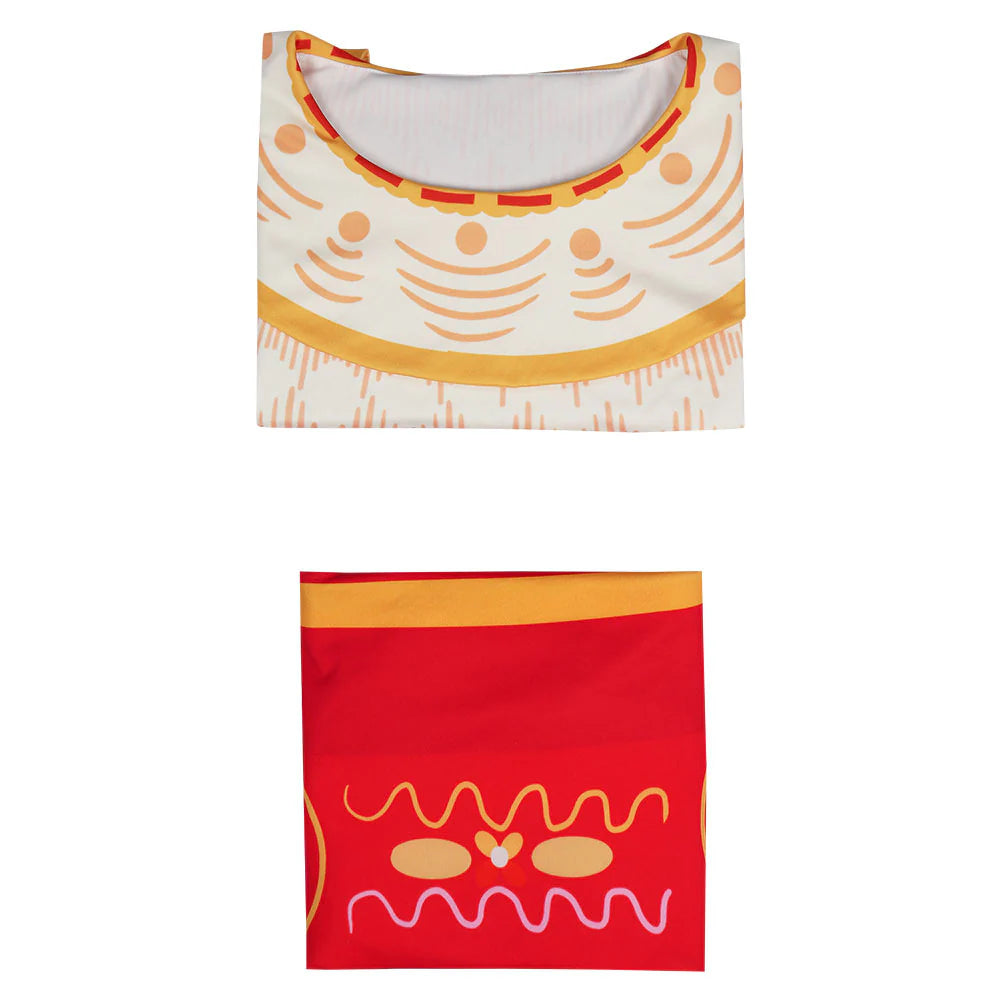 This Dolores Madrigal cosplay costume is inspired by Disney’s Encanto. Made from milk protein fiber and Lycra, it offers a soft, breathable, and flexible fit for kids and teens. The two-piece set includes a top and skirt, featuring screen-accurate patterns ideal for Halloween, cosplay, or themed parties.