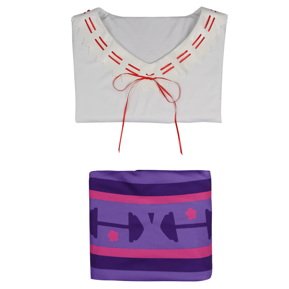 This Luisa Madrigal cosplay costume is inspired by Disney’s Encanto. Made from uniform cloth and faux leather, the outfit includes a top and skirt designed to replicate Luisa’s strong and confident style. Comfortable and detailed, this costume is perfect for Halloween, cosplay, or Disney-themed events.
