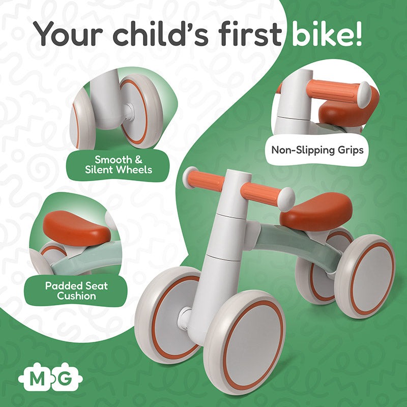 Your child wants to ride it right in your living room? That’s cool - the bike’s wheels are smooth and silent. A ride in the park? The 4 wheels are aligned to make sure it’s super stable, and there’s no fear of tipping over.