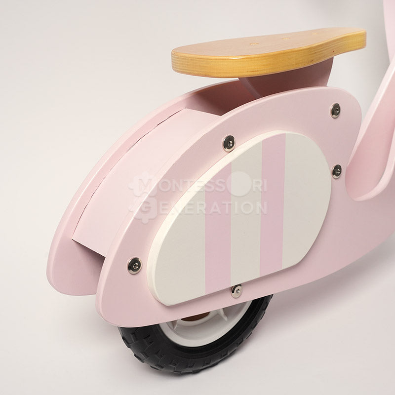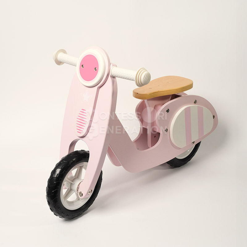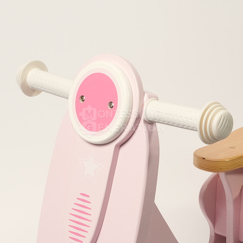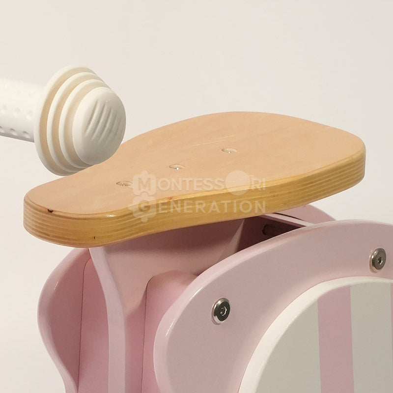 This is the prime example of “Montessori meets modern play.” This bike has all the cool features of modern bikes, but it’s wooden, like most Montessori toys. And its look boosts the whole vintage play vibe. Durability is top-notch!
